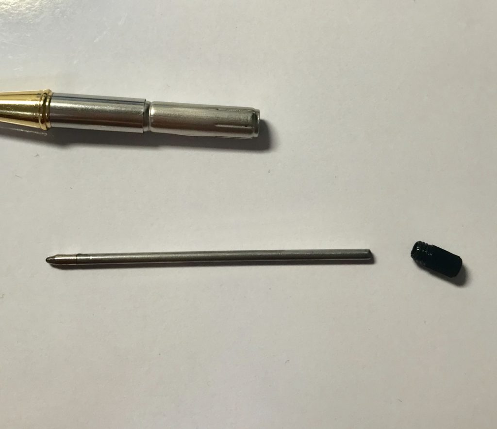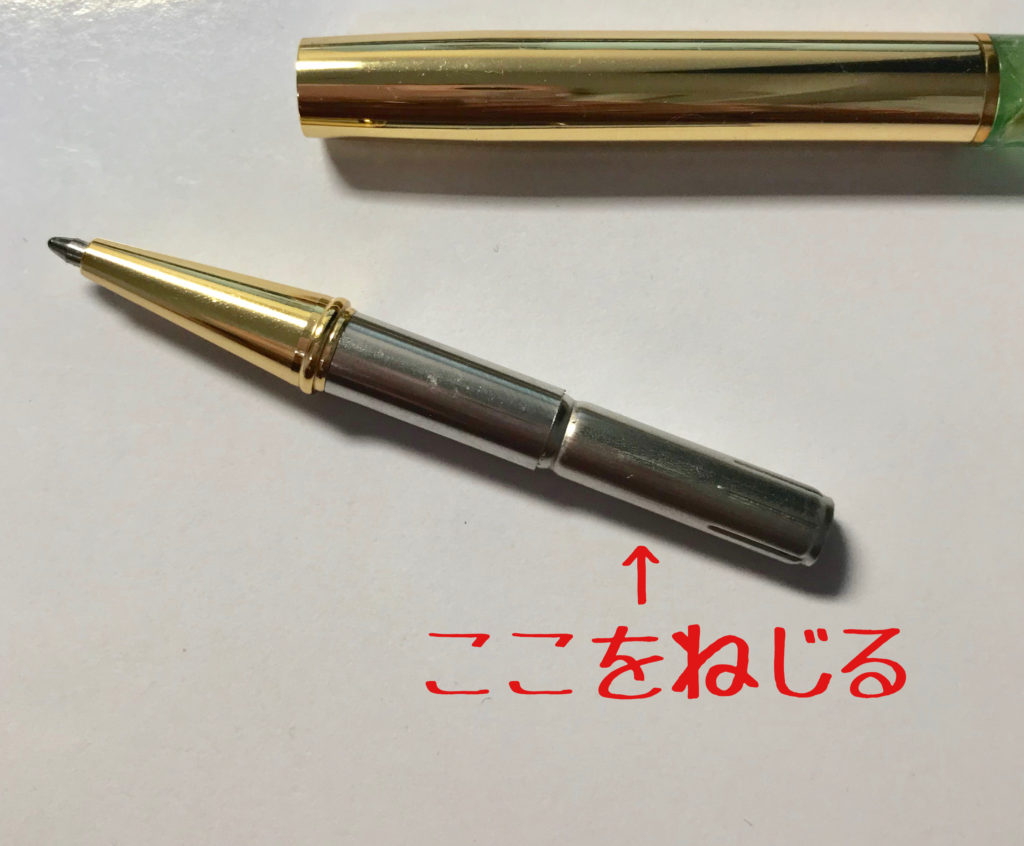 ②ペン先の後ろ部分を回すと黒い部分が出てきますので、その部分をねじって外す